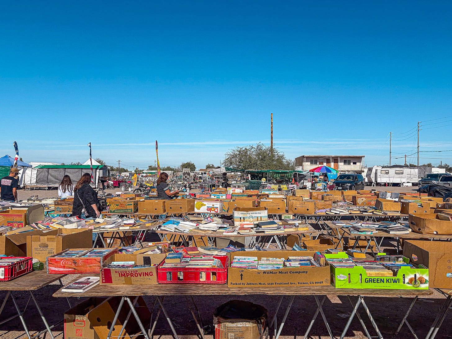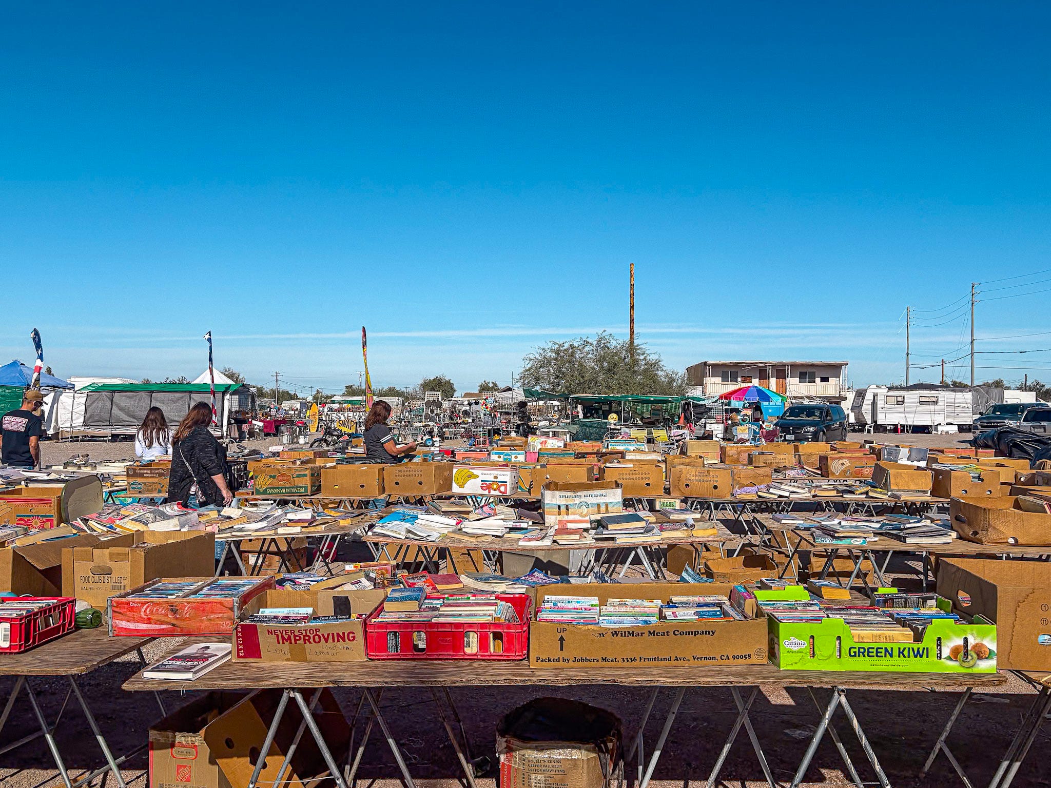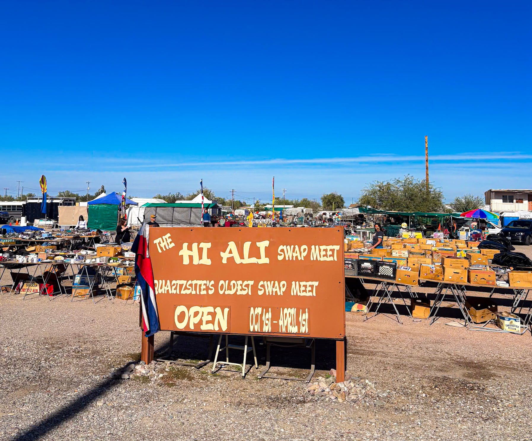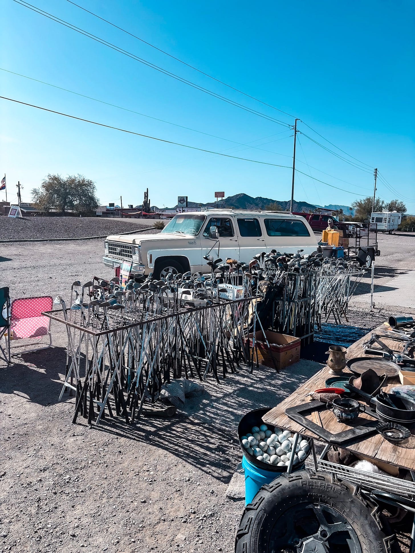 Quartzsite is known for two main things. A large nomad community that gathers here during the winter for the warmer weather, and rocks. Lots of them. The town is surrounded by massive BLM land where people can camp for free for up to two weeks, or longer if you pay a relatively cheap fee. It makes Quartzsite an ideal winter destination for people living in RVs, camper vans, and other mobile setups.