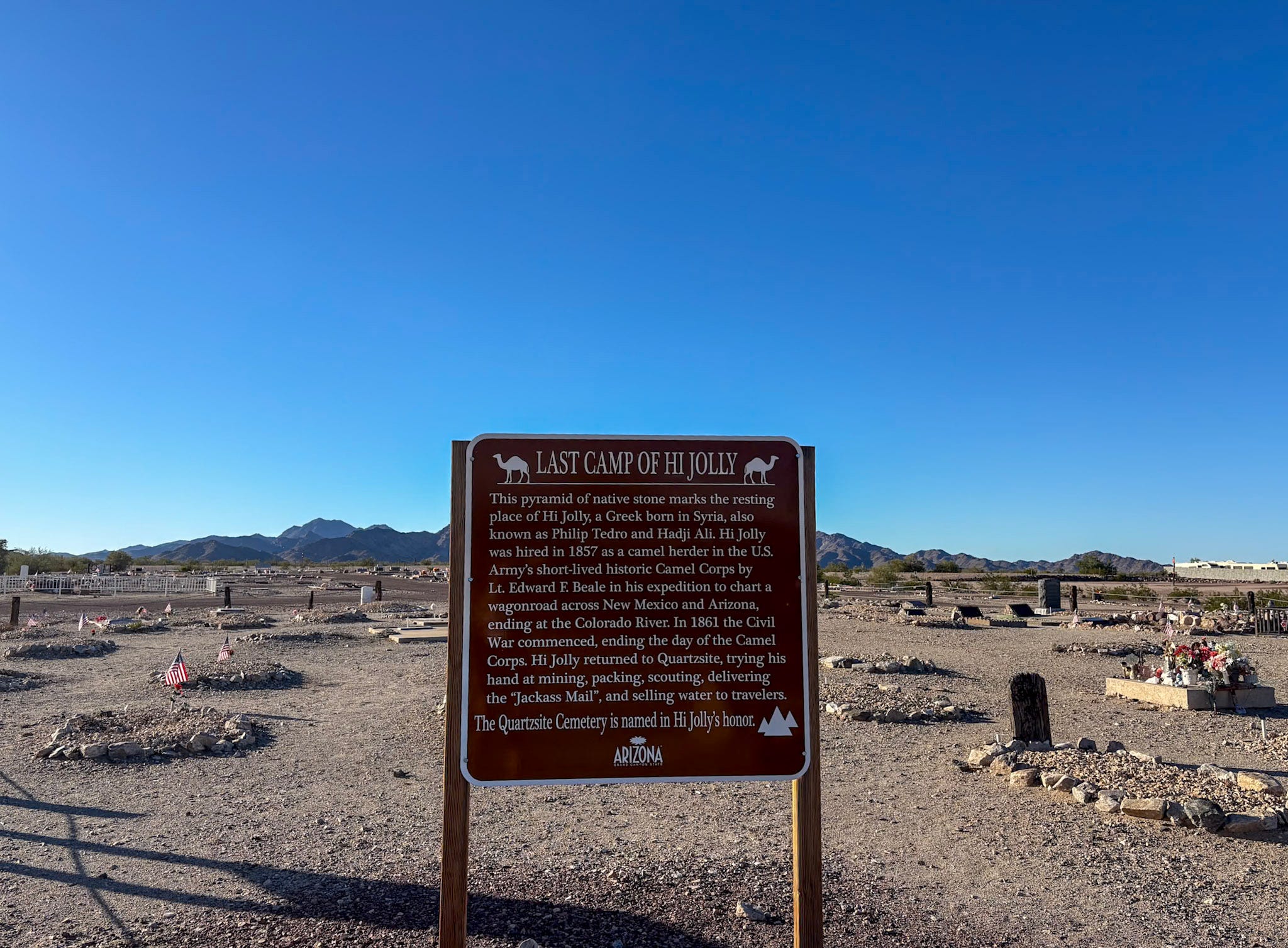One moment kept sticking with me after leaving Quartzsite. Near Hi Jolly Cemetery, I saw a group of people sitting in camping chairs arranged in a circle next to their motorhomes. They were older than me, clearly. I wondered if they could live somewhere else. They probably could. But they choose Quartzsite because this is where they have found their people.