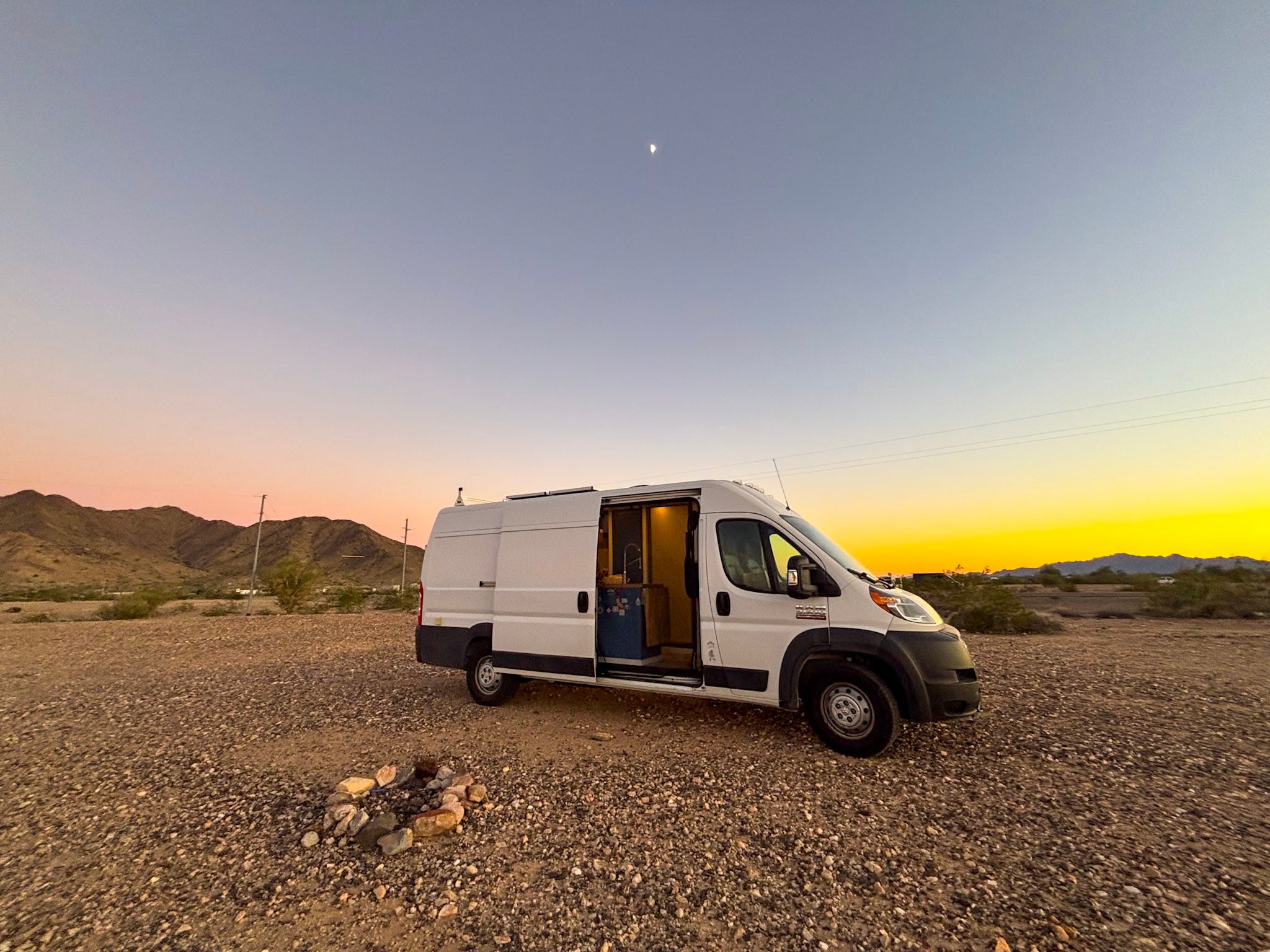 If you have been to Moab, Utah, you would find the vibe to be similar. Both places have strong van life communities and are surrounded by impressive nature. That said, Quartzsite feels larger in terms of its nomad population. Moab has red soil, while Quartzsite is all desert. While I was there, daytime temperatures hovered around seventy degrees. It was comfortable without needing AC or heating.